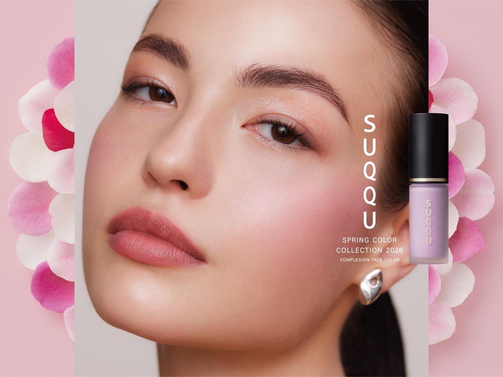 SUQQUの春カラーコスメは、「桜梅桃李(おうばいとうり)」がテーマ。春の訪れと共に咲く、桜・梅・桃・すももの美しい花々にインスパイアされたカラーを揃えたアイシャドウやチーク、リップスティックなどを展開する。